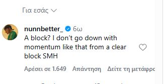 Ο Κέντρικ Ναν σχολίασε κάτω από την ανάρτηση της EuroLeague, που έδειχνε την τάπα του Μπαντιό πάνω στον ίδιο, με τη διοργανώτρια αρχή να διαγράφει το συγκεκριμένο ποστ.Συγκεκριμένα μετά από το «παράπονο» του παίκτη του Παναθηναϊκού, για τη συγκεκριμένη φάση η EuroLeague κατέβασε το βίντεο που έδειχνε την τάπα του Μπαντιό.Ο Ναν είχε γράψει: «Κόψιμο; Με τίποτα. Δεν γίνεται να πέσω έτσι από καθαρό μπλοκ, δεν το πιστεύω».
